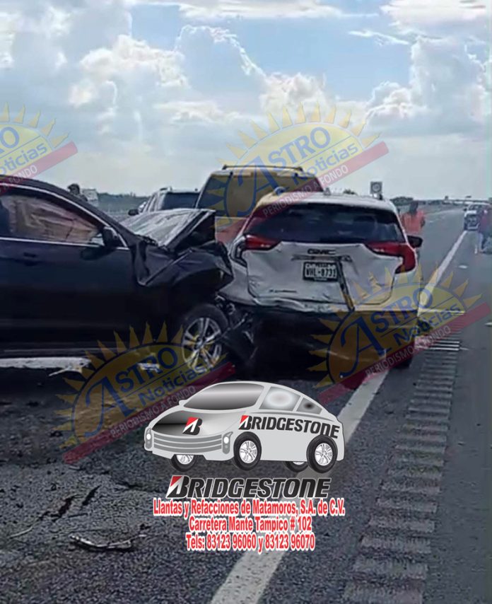 Un incendio de pastizal provocó un accidente automovilístico múltiple en el km 57 de la autopista Reynosa–Matamoros, debido a la falta de visibilidad en la zona.