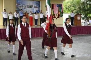 La presidenta municipal Mariela López Sosa encabezó la ceremonia conmemorativa por el Día de las Naciones Unidas en la Escuela Secundaria Técnica No. 38, donde se reafirmaron los valores de paz, unidad y cooperación internacional.