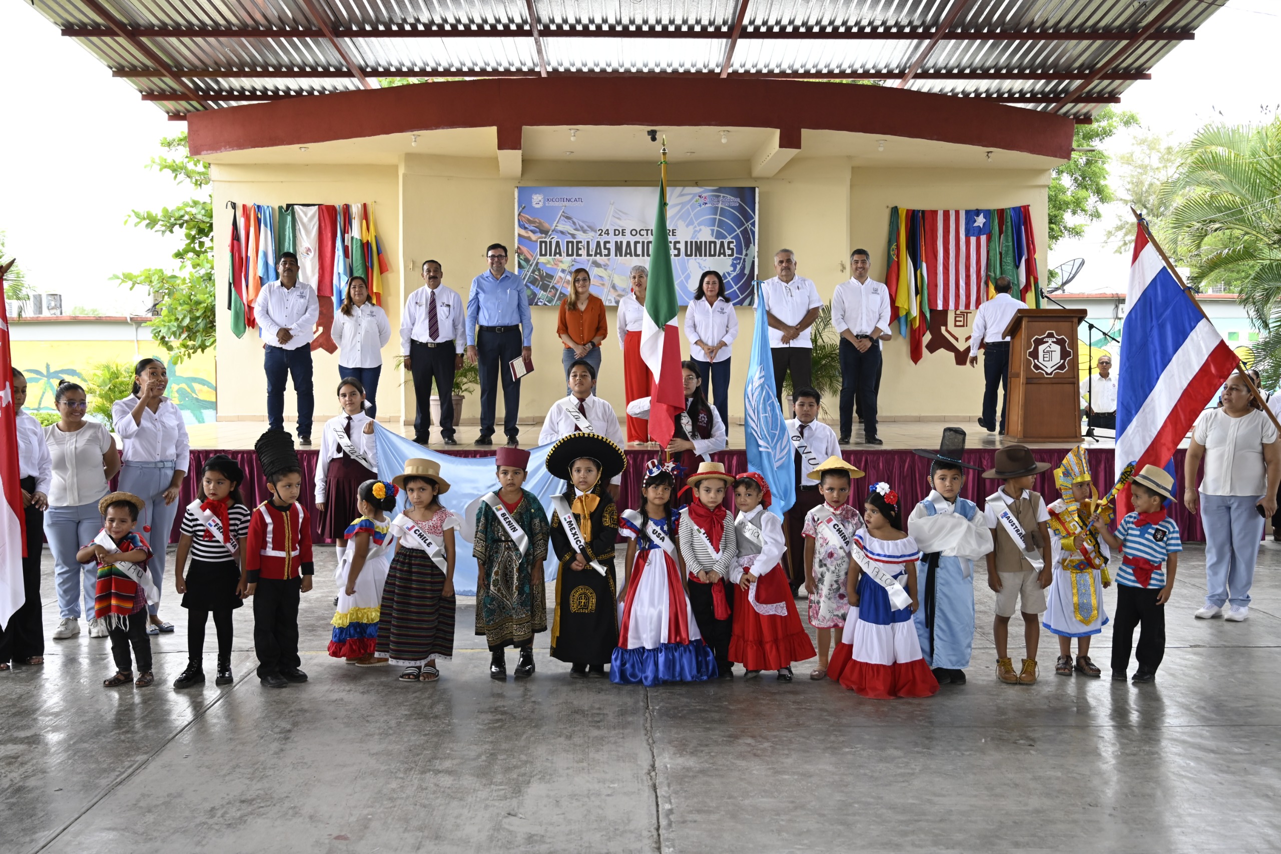 La presidenta municipal Mariela López Sosa encabezó la ceremonia conmemorativa por el Día de las Naciones Unidas en la Escuela Secundaria Técnica No. 38, donde se reafirmaron los valores de paz, unidad y cooperación internacional.