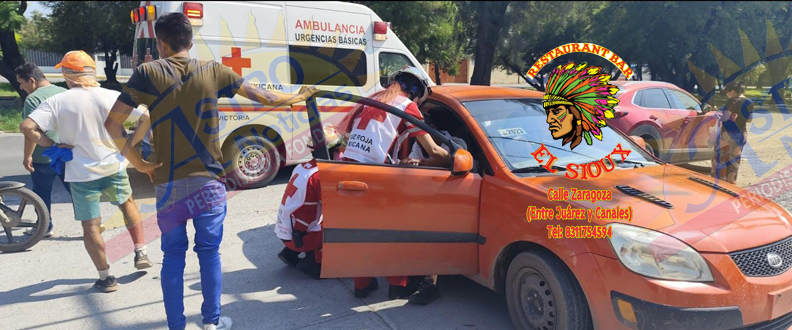 Una mujer y su padre sufrieron lesiones de seriedad cuando estrellaron su motociclista contra una camioneta Mazda, cuya conductora les invadió carril en el Boulevard “Fidel Velázquez “ con Olivia Ramírez, en #ciudadVictoria .