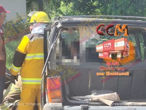 Un hombre qued贸 prensado en su camioneta tras un choque en el kil贸metro 49 de la carretera Victoria-Monterrey, a la altura del crucero del ferrocarril de Estaci贸n Cruz.