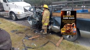 El percance se registró cuando una camioneta pick Up tubular tipo Dodge Ram chocó contra un tráiler.