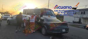 Paramédicos de la Cruz Roja, acudieron para brindarle los primeros auxilios a la conductora de un vehículo Dodge, la cual presentaba diversas lesiones.