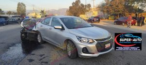 Sin embargo al llegar a la entrada del fraccionamiento Viento Huasteco, no alcanzó a frenar al llegar a unas voyas, logrando impactarse en la parte trasera de un automóvil, Chevrolet Ónix.