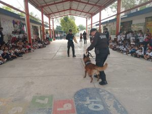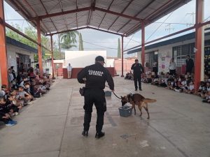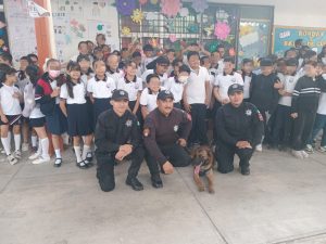 Niñas y niños vivieron una jornada de aprendizaje al recibir la visita de “Max”, un canino de la Guardia Estatal cuya misión es detectar narcóticos.