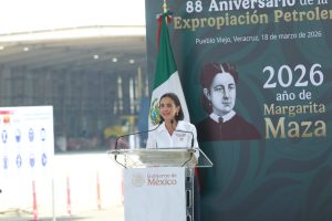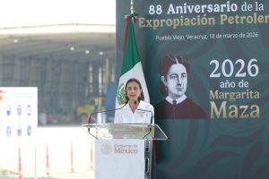 “Al recordar aquella noche histórica de 1938, reafirmamos nuestro compromiso con el pueblo y con la patria: que nunca más se entregue la riqueza de México, que nunca más se renuncie a nuestra soberanía, que nunca más se dude de la capacidad de nuestros trabajadores y nuestros técnicos”, expresó.