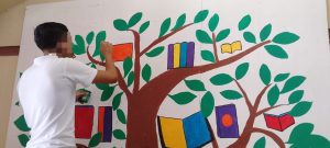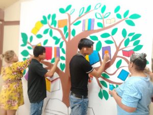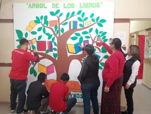Reynosa, Tamaulipas.- En seguimiento al programa establecido en el Centro Regional de Ejecución de Medidas para Adolescentes del municipio de Reynosa, adolescentes en conflicto con la Ley Penal y sus familias participaron en la creación del mural “El árbol de los libros”.