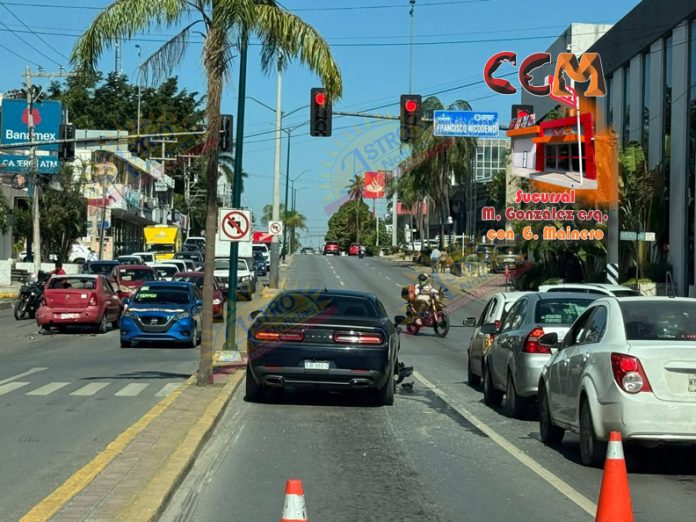 La unidad en mención circulaba por la Hidalgo rumbo al norte, cuando su conductor hizo maniobra para cambiar al carril izquierdo, provocando que lo impactara en la parte trasera un vehículo deportivo de la línea Challenger.