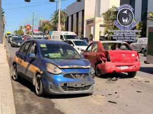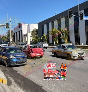 El fuerte percance en el que se vieron involucradas tres unidades, ocurrió en el cruce con la calle Nicodemo, donde según los primeros reportes en la colisión se vio involucrado un automóvil Nissan Aprio color rojo con placas de Tamaulipas.