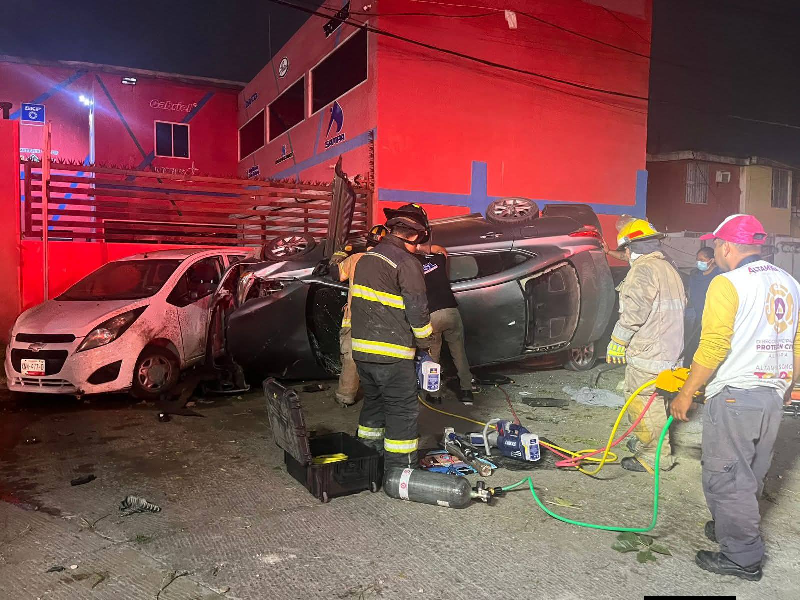 Altamira, Tamaulipas.– Durante la madrugada de este miércoles se registró una aparatosa volcadura que dejó como saldo una persona lesionada y cuantiosos daños materiales, en hechos ocurridos en el fraccionamiento San Ángel.