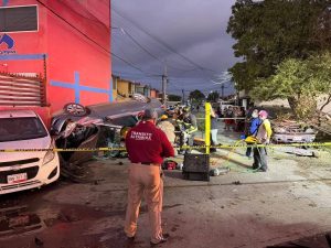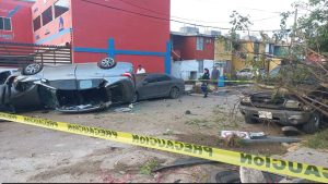 De acuerdo con los primeros informes, el conductor de un Nissan Sentra color gris presuntamente perdió el control de la unidad al circular a velocidad inmoderada. Tras ello, el vehículo se impactó contra varios automóviles que se encontraban estacionados y finalmente terminó volcado.
