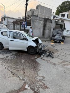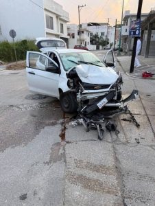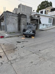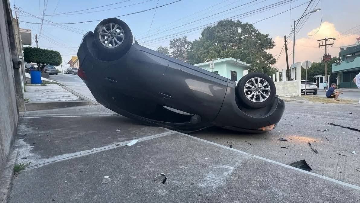 En Tampico, Tam…. La mañana de este miércoles se registró un fuerte accidente vial en la colonia Universidad Sur, donde tres estudiantes de medicina resultaron con golpes leves tras un choque que derivó en la volcadura de uno de los vehículos involucrados.