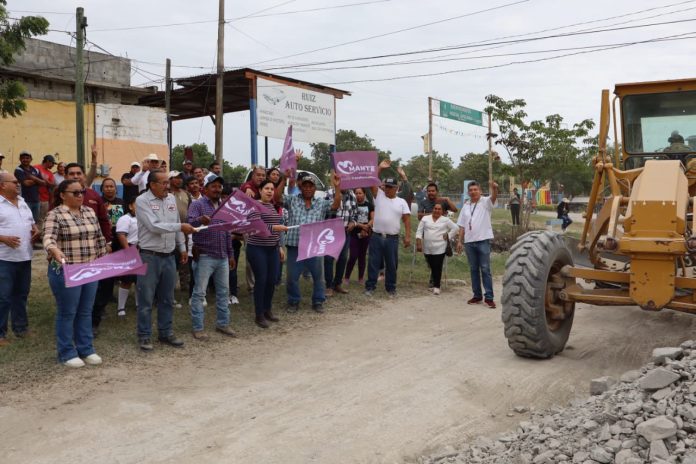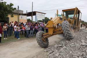 En el marco del aniversario del ejido San Martín Caballero, comunidad  perteneciente a Nueva  Apolonia, la presidenta Municipal Patty Chío dio el banderazo para el inicio de la rehabilitación  de vialidades de esta población de la zona temporalera.