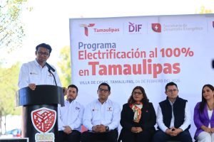 Villa de Casas, Tamaulipas.– Con el objetivo de garantizar que todas y todos los tamaulipecos, tengan acceso a la energía eléctrica, la Secretaría de Desarrollo Energético, en colaboración con la Secretaría de Bienestar, el Sistema DIF Tamaulipas y el municipio de Casas, dio el banderazo inicial del programa “Electrificación al 100%”, en Tamaulipas.