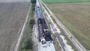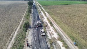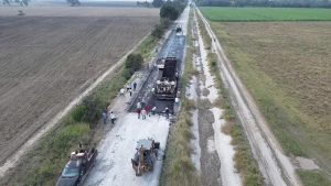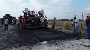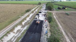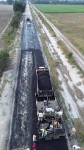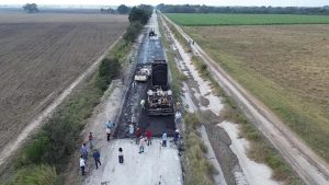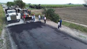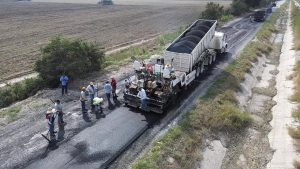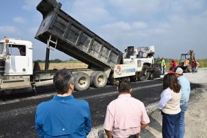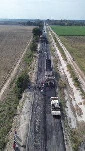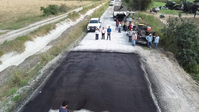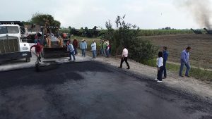 La presidenta municipal Mariela López Sosa dio el arranque a una importante obra de pavimentación con carpeta asfáltica en el camino vecinal a Moctezuma y Pancho Villa, donde se aplican 600 metros lineales y 4,700 metros cuadrados de asfalto.