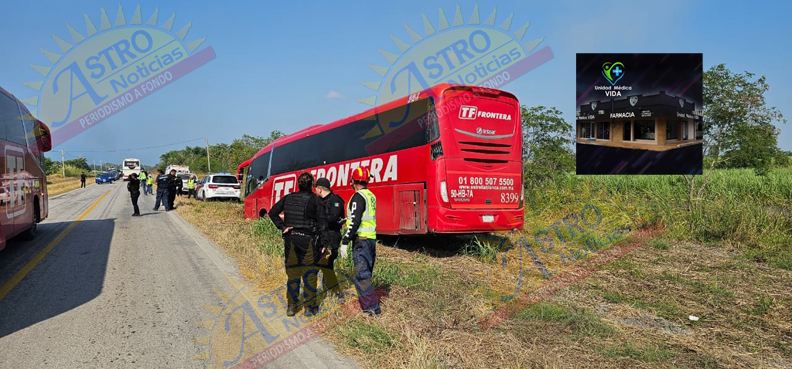 En Gómez Farías, TamulipasUn autobús de pasajeros de la línea Frontera estuvo a punto de volcar luego de verse involucrado en un accidente vial registrado la tarde de este domingo sobre la carretera Mante–Llera.