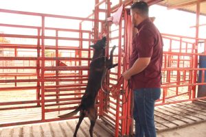 Ciudad Victoria, Tamaulipas.– Con el firme compromiso de reforzar la sanidad en el sector pecuario, el Gobierno del Estado, a través de la Secretaría de Desarrollo Rural, Pesca y Acuacultura, avanza en la implementación de acciones preventivas para la detección oportuna del gusano barrenador del ganado (GBG), mediante el uso de binomios caninos especializados.