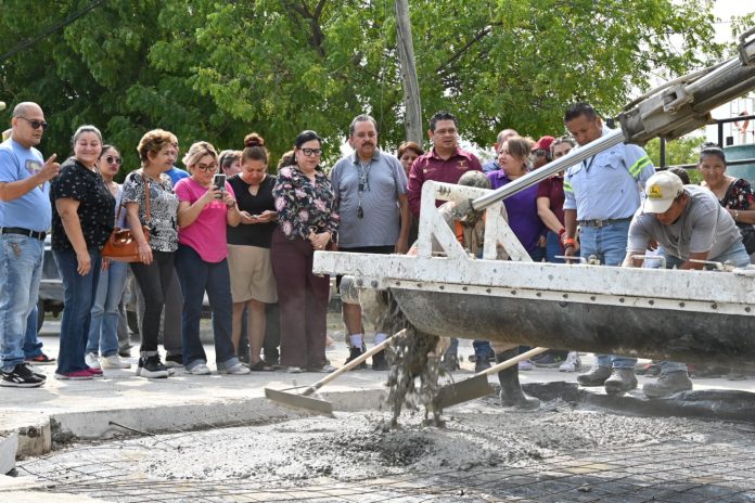 * Con apoyo de la concretera móvil se rehabilita la calle Víctor Saavedra de la colonia Linares.