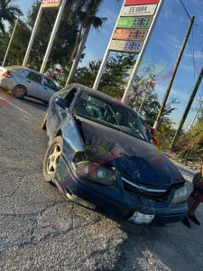 Según los primeros informes, el conductor de un Chevrolet Impala salía de la gasolinera para incorporarse a la carretera cuando, presuntamente sin la debida precaución, le cortó el paso al motociclista, quien viajaba en una unidad deportiva.