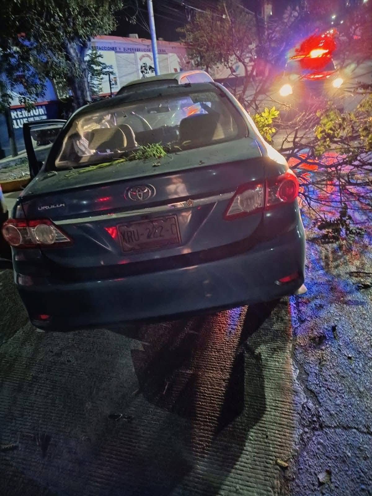 Lo más sorprendente: la unidad, un Toyota Corolla gris con placas de Tamaulipas, fue abandonada con las puertas abiertas, dejando tras de sí cuantiosos daños materiales.