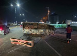De nueva cuenta el punto conocido como “La Maseca” en la Avenida de la Industria de Altamira, se convirtió en el escenario de un fuerte accidente vial, al impactarse contra el semáforo esta madrugada una camioneta que terminó volcada sobre un costado.