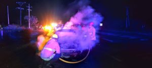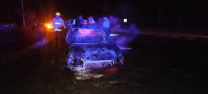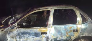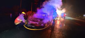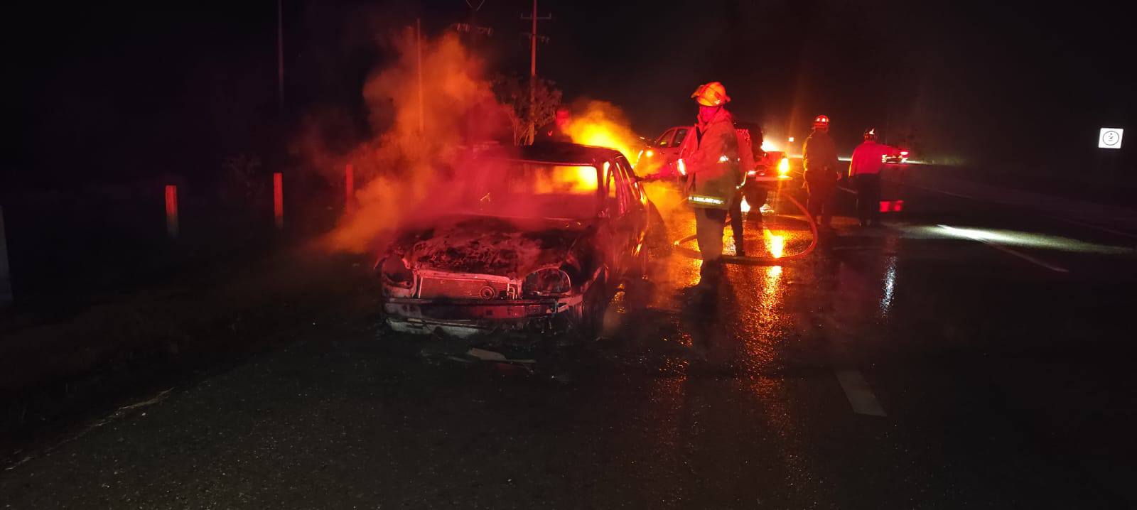 Al arribar al lugar, los elementos del Cuerpo de Bomberos encontraron un vehículo tipo Chevy envuelto en llamas, el cual fue consumido en su totalidad por el fuego.