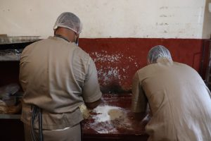 Ciudad Victoria, Tamaulipas.- En el marco del Día de Reyes, personas privadas de la libertad (PPLs) del Centro de Ejecución de Sanciones (CEDES) elaboran las tradicionales roscas, regulares y rellenas, mismas que pueden ser adquiridas por la población en la tienda ubicada al exterior del centro penitenciario.