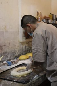 Eduardo, quien lleva alrededor de un año desempeñándose en la panadería del CEDES Victoria, comentó que la elaboración de las roscas se realiza a la par de las más de 800 piezas que diariamente producen para el desayuno de la población del CEDES, por lo que las jornadas en los últimos tres días han iniciado desde las 04:00 horas.