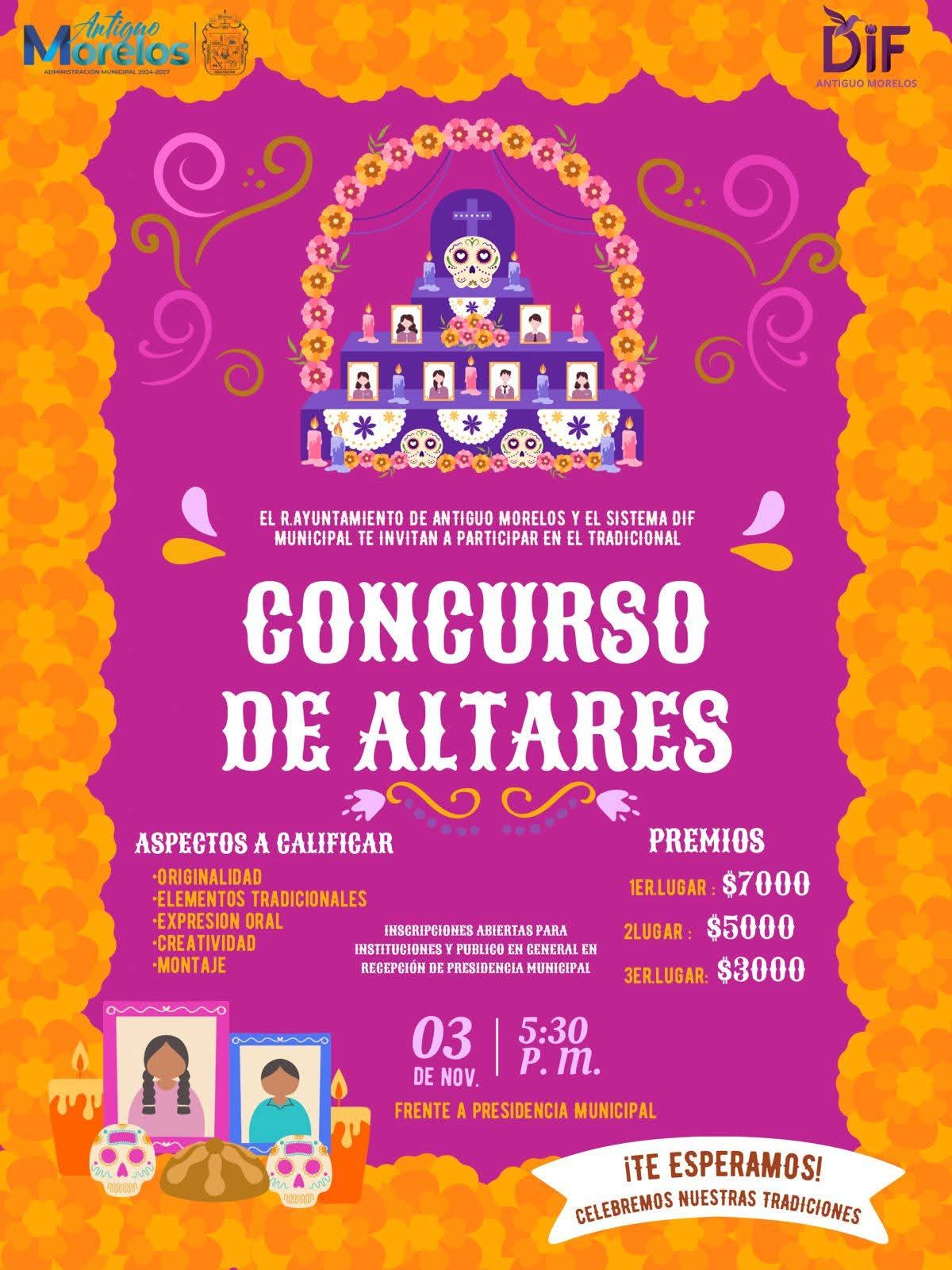 El R. Ayuntamiento de Antiguo Morelos y el Sistema DIF Municipal te invitan a celebrar nuestras tradiciones con una serie de emocionantes concursos. ¡Participa y revive la esencia de la cultura mexicana!