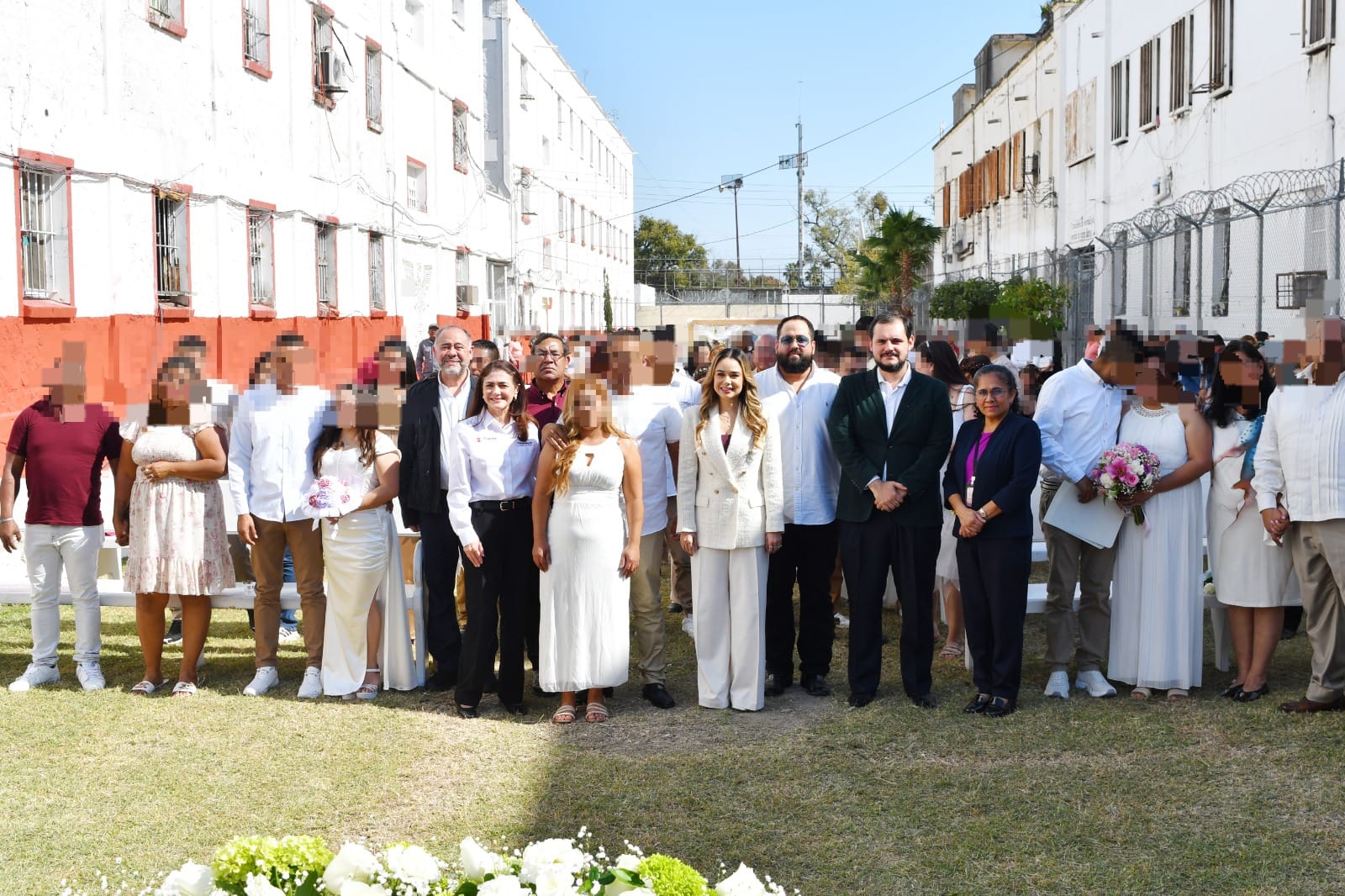 La ceremonia de matrimonios colectivos fue posible gracias a la sinergia entre la Secretaría de Seguridad Pública de Tamaulipas (SSPT), el Sistema DIF Victoria, la Dirección de Oficialías del Registro Civil y el Instituto de las Mujeres en Tamaulipas, y consistió en el enlace legal de 11 parejas integradas por PPLs y 10 entre residentes del CEDES Victoria y personas externas.