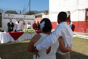 Ciudad Victoria, Tamaulipas.– Con base en el respeto a los derechos de las personas privadas de la libertad (PPLs) y en la estrategia de reinserción social, que tiene a las relaciones familiares entre sus ejes fundamentales, 21 parejas formalizaron su unión al interior del Centro de Ejecución de Sanciones (CEDES) de Ciudad Victoria.