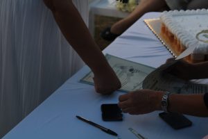 Tras firmar y recibir los documentos legales, las parejas recién casadas celebraron una recepción que contó con la asistencia de sus seres queridos, quienes degustaron mole, pastel y refrescos, y participaron en las tradiciones que distinguen a las bodas mexicanas, tales como bailar el vals, “la víbora de la mar” y el lanzamiento del ramo.