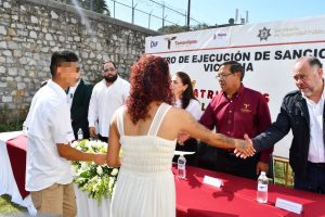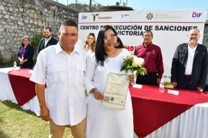 “La unión en pareja que celebramos en esta fecha cobra relevancia para continuar con su programa encaminado a su reinserción a la sociedad. En lo personal, me queda desearles una vida próspera en pareja, esperando que se encuentren orgullosos del paso que están dando el día de hoy”, manifestó el director del CEDES Victoria, Mario Alberto Hernández Aguirre.
