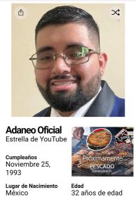 Adaneo, cuyo nombre real es Adam Alejandro Ruiz García, tiene 32 años, es profesor de secundaria y en los últimos años se convirtió en uno de los youtubers más populares del país gracias a su canal “Adaneo Oficial”. Su contenido se basa en comedia familiar, sketches y situaciones cotidianas, evitando lenguaje inapropiado y conectando con públicos de todas las edades en YouTube, Facebook y TikTok.