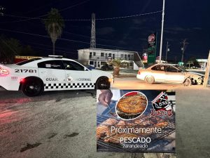 Matamoros, Tamaulipas.-Un conductor que viajaba en compañía de otros jóvenes, acabaron por chocar contra un poste dejando cuantiosos daños materiales, y el vehículo abandonado.