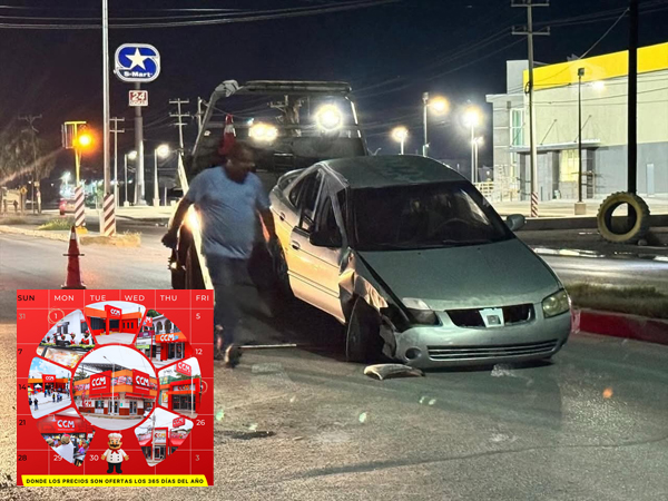 Se trata de un carro Nissan Sentra, el cual se desplazaba de poniente a oriente, mismo que su conductor perdió el control debido al exceso de velocidad, provocando chocar contra un poste de Telmex.