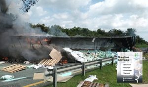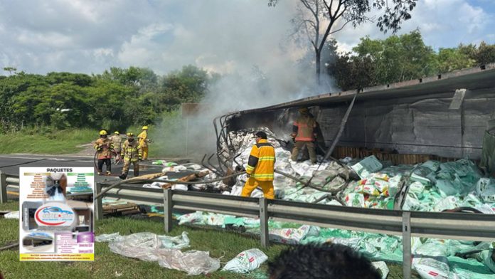 El operador de un tráiler que transportaba costales con fertilizante, falleció horriblemente calcinado dentro de la unidad que volcó y se incendió la tarde de este viernes.
