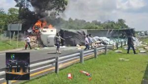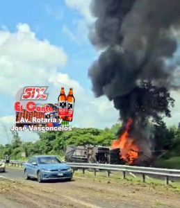 De manera súbita a la unidad de carga comenzó a incendiarse en el área de la cabina, quedando atrapado el chofer quien lamentablemente fue encontrado calcinado en el interior una vez que personal de bomberos logró controlar la situación, quedando la zona acordonada y la circulación obstruida rumbo al norte, mientras personal de la Fiscalía General de Justicia daba fe de los hechos.