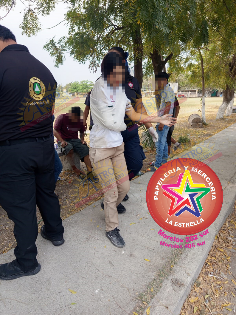 Paramédicos del Heroico Cuerpo de Bomberos acudieron al lugar para brindar los primeros auxilios a la joven Emily B., de 17 años de edad, estudiante del Conalep y con domicilio en la colonia Azucarera.
