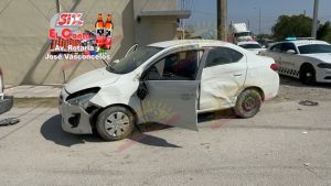 Fue entonces cuando la camioneta impactó al vehículo compacto, provocando daños materiales en ambas unidades.