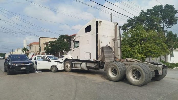 Un accidente vial se registró en el cruce de Guillermo Prieto y 5 de Mayo, en Ciudad Madero, donde un automóvil y un tráiler colisionaron de frente.