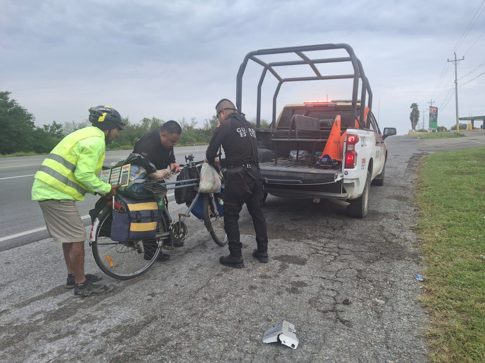 -Un ciclista mexicano y un extranjero se encuentran transitando por carreteras tamaulipecas con el apoyo de la Guardia Estatal