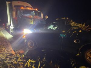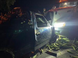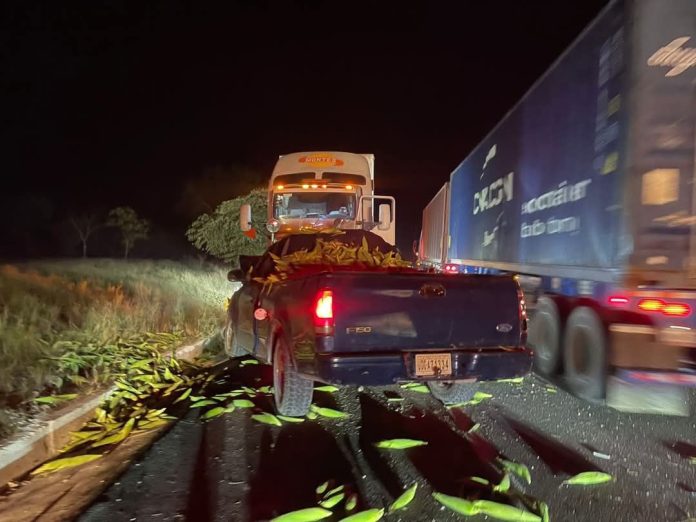 Pero en su trayecto chocó contra el costado derecho de una camioneta Ford F-150 verde, que transportaba elotes, y la proyectó contra otro tráiler, provocando su colisión de frente.