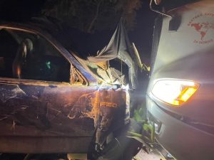 En la camioneta viajaban Lemuel, de 19 años de edad, y su padre, también de nombre Lemuel, de 49 años, domiciliados en el municipio de Axtla, quienes resultaron con varias lesiones y fueron llevados a bordo de la ambulancia de Cruz Roja al Hospital General de Ciudad Valles.