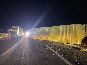 De acuerdo con la información recabada, el chofer de un tráiler con doble semirremolque, que transportaba productos de Nestlé, invadió carril y volcó sobre uno de sus costados.