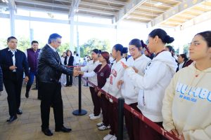 El rector Anaya Alvarado reconoció el respaldo del gobernador Villarreal Anaya para hacer posible la transformación de la Facultad de Enfermería y la entrega de nueva infraestructura, como la techumbre monumental de más de 1,160 metros cuadrados que se pone al servicio de la comunidad académica, así como una techumbre de usos múltiples con domo, que dignifica los espacios donde se construye la vida universitaria.