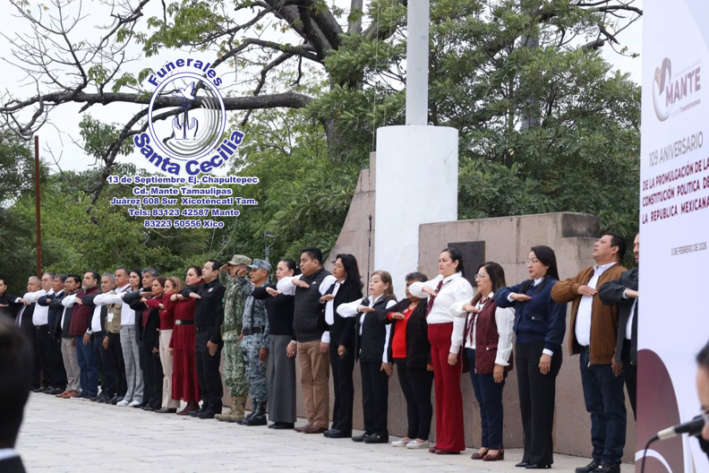 El Gobierno Municipal de El Mante 2024–2027 llevó a cabo la ceremonia cívica con motivo del 109 Aniversario de la Constitución Política de los Estados Unidos Mexicanos, en un acto solemne que reafirma el compromiso con los valores, principios y derechos que rigen la vida democrática del país.