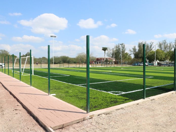 El secretario Pedro Cepeda Anaya mencionó que en el citado espacio público construyen una cancha de fútbol de pasto sintético con las medidas reglamentarias para modalidad de Fut-7, baños y gradas.