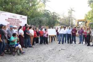 Con la conclusión de los trabajos de introducción de la red de agua potable y drenaje sanitario, y al dar el banderazo de arranque a la etapa de pavimentación, la presidenta municipal Patty Chío cumple con una acción fundamental que permitirá avanzar en la conformación de un circuito vial, mejorando las condiciones de tránsito y la calidad de vida de las familias.
