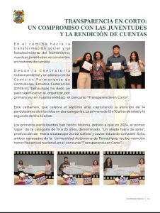 Este concurso, organizado en colaboración con la Comisión Permanente de Contralores Estados-Federación (CPCE-F), se ha convertido en una plataforma para que las juventudes expresen su visión sobre la transparencia y la rendición de cuentas.